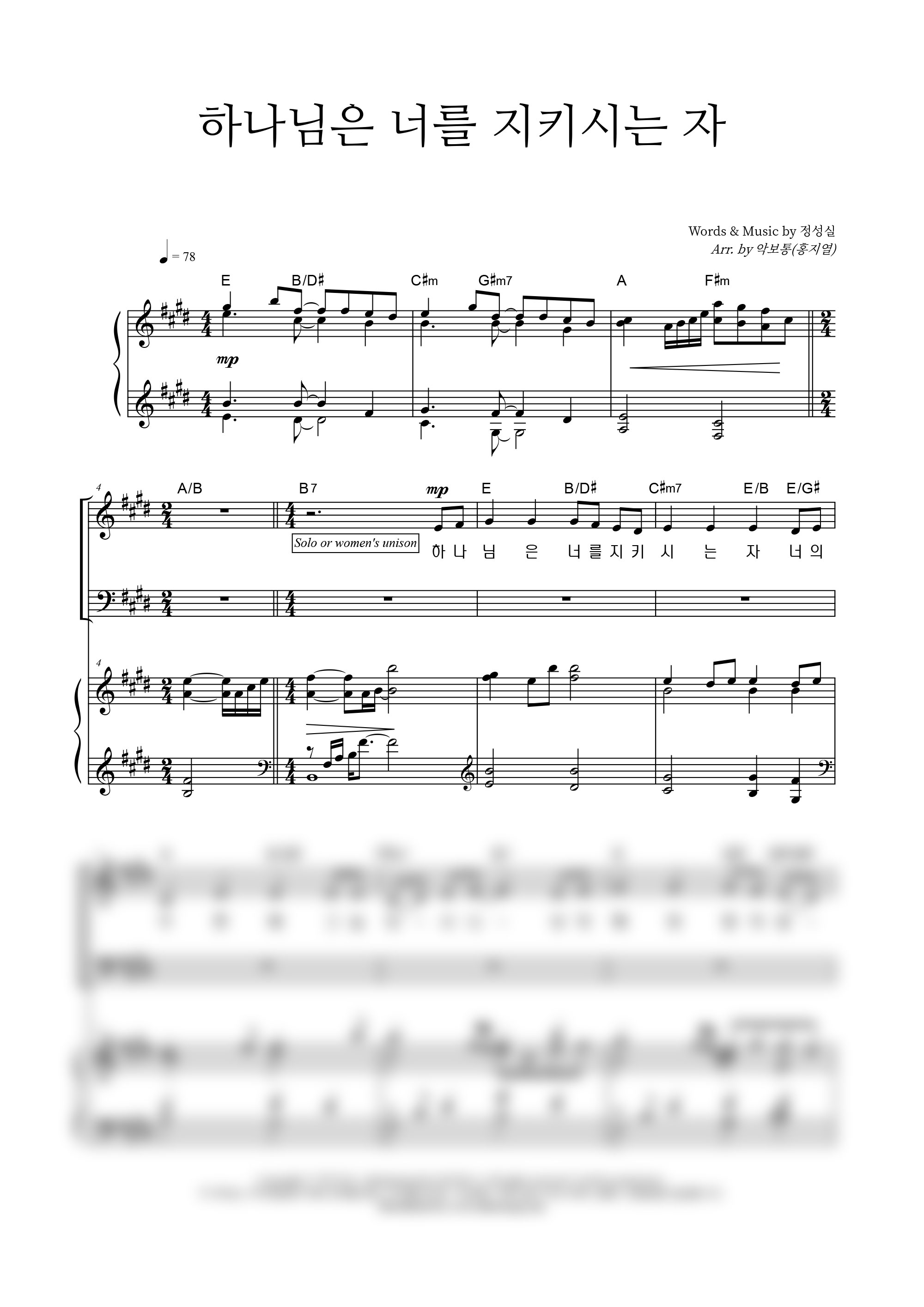 | 하나님은 너를 지키시는 자 | 4부 + 피아노 반주 |