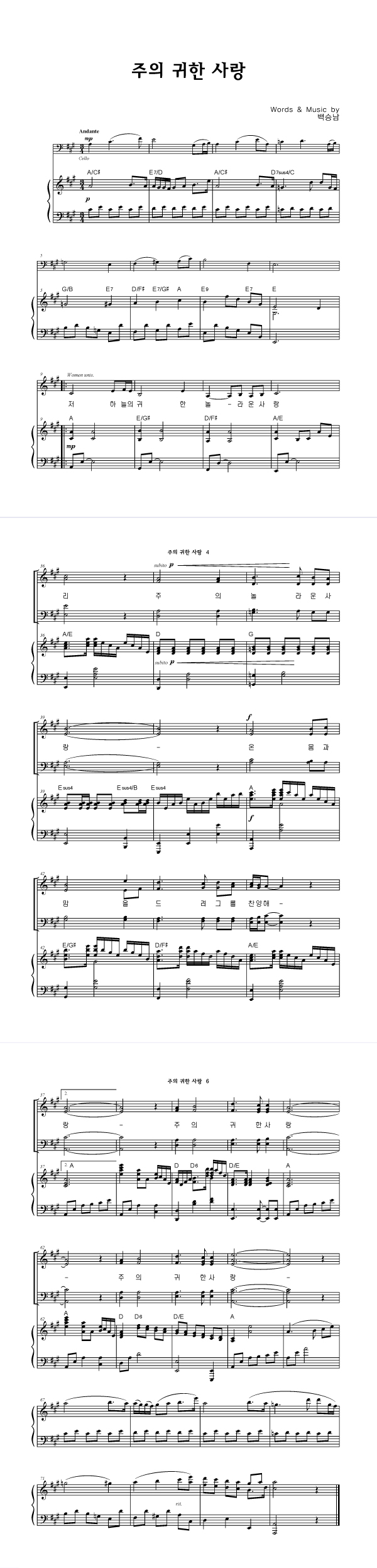 | 주의 귀한 사랑 | 4부 + 피아노 반주 |