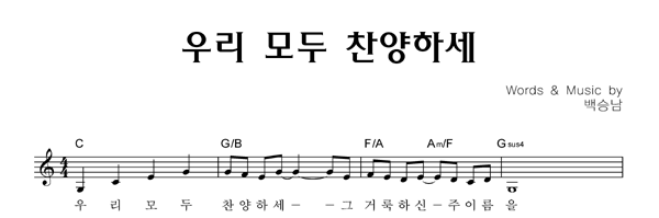 | 우리 모두 찬양하세 큰글씨 | 4부 + 피아노 반주 |