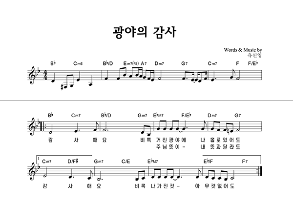 실제로 이 노래는 구세군 사관인 남편과 미국 유학길을 떠나 광야같이 척박한 하루하루를 살았던 유신영 사모의 간증이기도 하다. 타지생활과 가난으로 하루하루가 고단했던 그들에게 하나님은 꼭 필요한 것들을 채워주시고 삶을 인도하셨을 때 간증처럼 만들어진 한 곡의 노래, 그 애잔함과 감사가 가득 묻어나는 노래다.