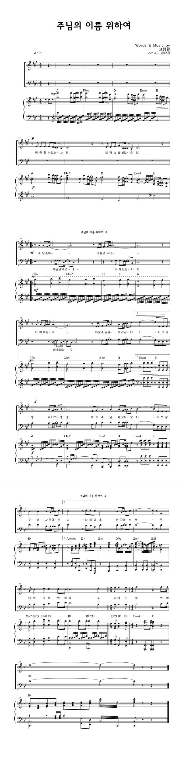 | 주님의 이름 위하여 | 3부 + 피아노 반주 |