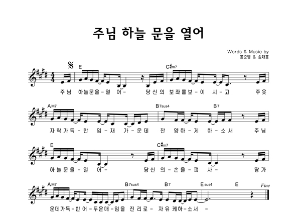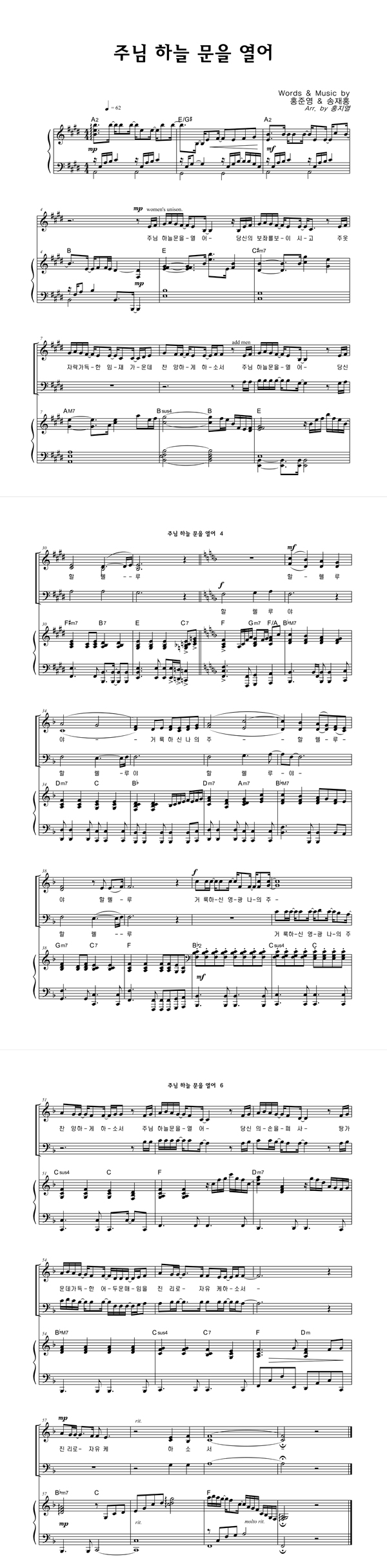 | 주님 하늘 문을 열어 | 4부 + 피아노 반주 |