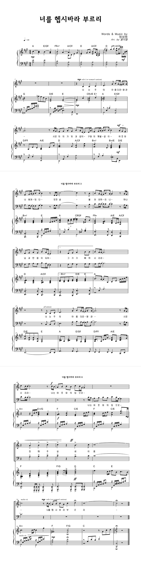 | 너를 헵시바라 부르리 | 3부 + 피아노 반주 |