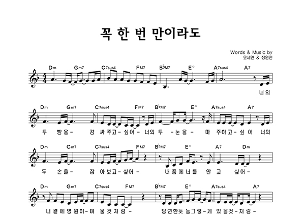 경기도 양주의 정언향교회 예배감독 정원진의 2018년 네 번째 디지털 싱글은 추모곡, [꼭 한 번만이라도]이다.