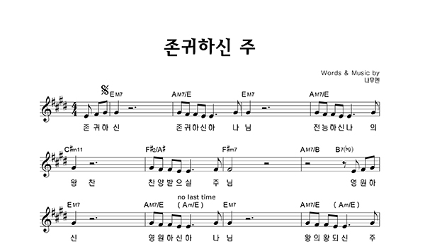 ‘존귀하신 주’는 지난 2010년 첫 찬송가 작업을 하기 이전에 만든 곡으로 사순절에 맞춰 구원자(Redeemer)예수라는 이름으로 선을 보이고 싶었으나 이번에야 비로서 발표하게 되었습니다.