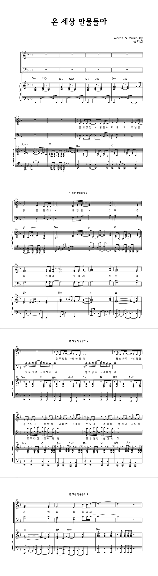 | 온 세상 만물들아 | 4부 + 피아노 반주 |