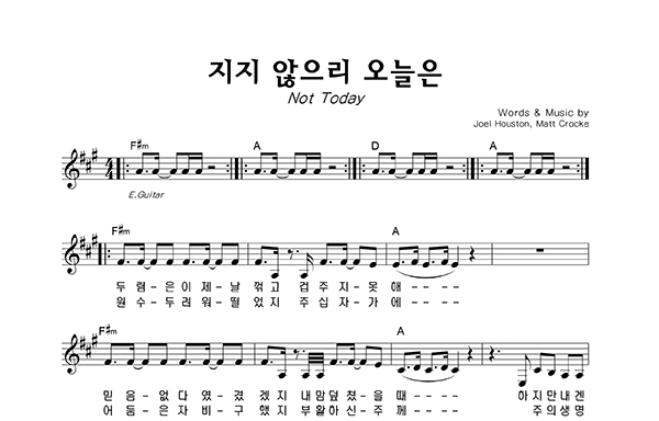 “하나님은 하신 말씀에 신실하신 분이시라고 믿습니다. 이 노래는 참 재밌는 노래입니다. 이 노래는 ‘올바른 분노’가 무엇인지를 보여줍니다. 사단을 향해 너의 자리는 없다고 선포하며 잘못된 것을 향한 올바른 분노가 무엇인지 느낄 수 있습니다. 이 노래는 노래를 하도록 지어진 노래가 아닙니다. 입술의 고백을 하도록 지어진 노래입니다. 우리의 상황이 어떠하든지 말입니다. 모든 상황속에서 ‘사단아! 오늘은 결코 너의 날이 아니다’ (Not Today! Not Today!)라고 고백하는 기쁨을 누리는 것입니다.”