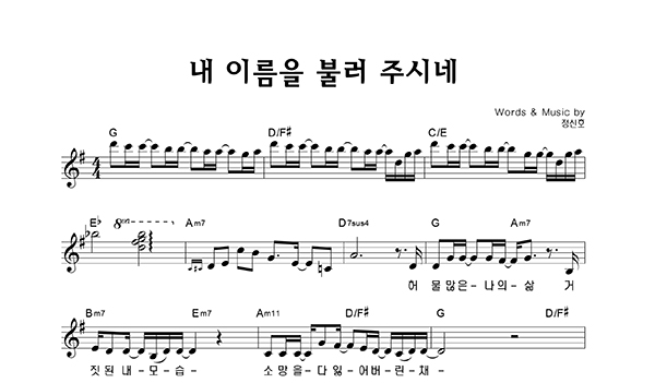 첫 번째로 선보이는 곡 [내 이름을 불러 주시네]는 이커브 워십의 정신호 목사와 콜라보로 만들어진 작품입니다. 다시 주님께 집중하며 열정으로 나아가는 마음을 진솔하게 담아 내었습니다. 시작도 예배이고, 마지막도 예배이며, 결국엔 예배임을 인정하고 온전히 올려드리는 삶이 되기를 소망해 봅니다.