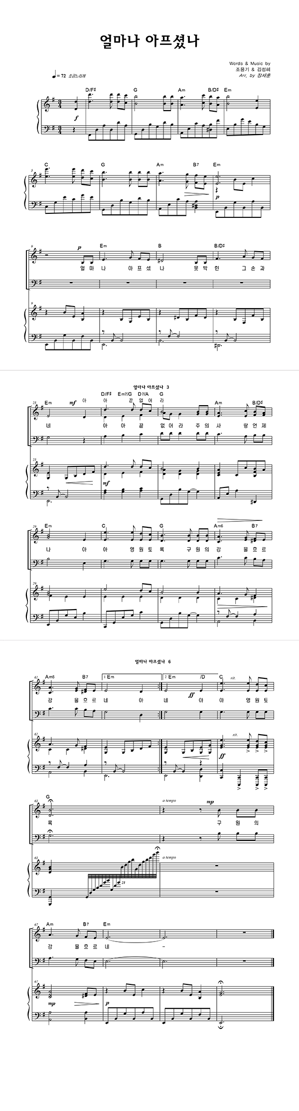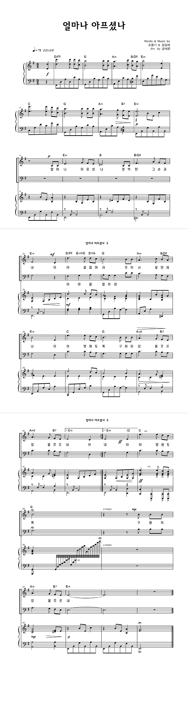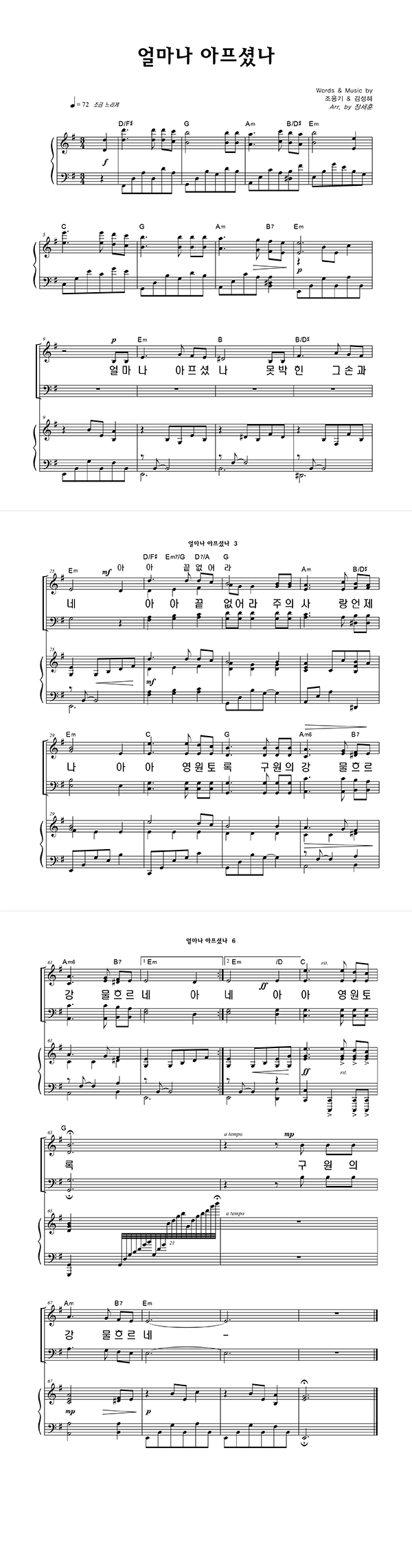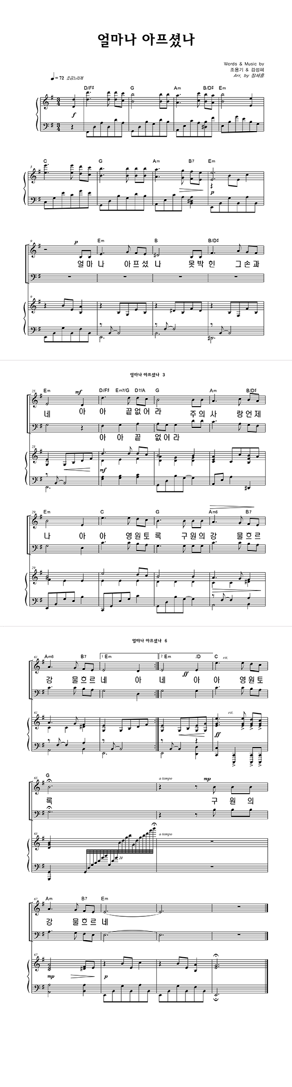 | 얼마나 아프셨나 (찬송가 614장) | 4부 + 피아노 반주 |