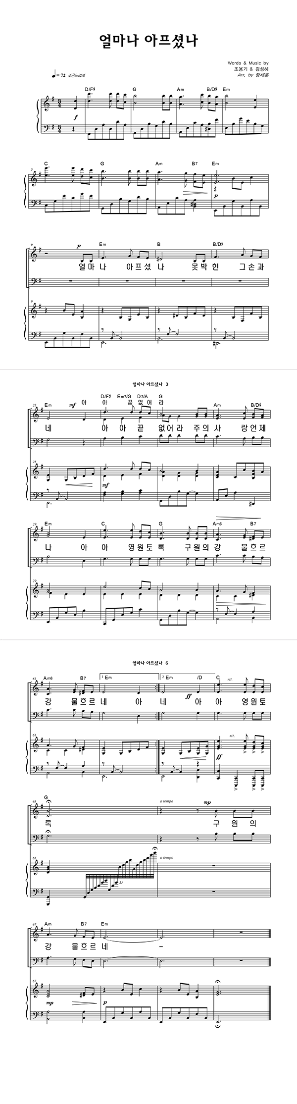 | 얼마나 아프셨나 (찬송가 614장) | 3부 + 피아노 반주 |