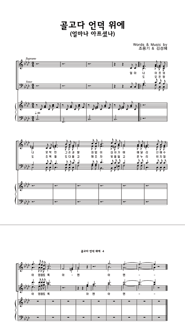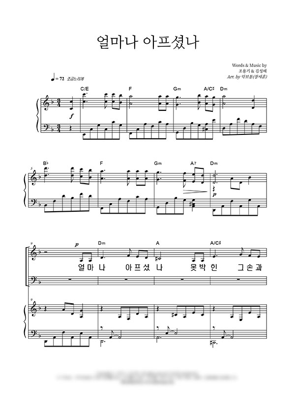 | 얼마나 아프셨나 (찬송가 614장) | 2부 + 피아노 반주 |