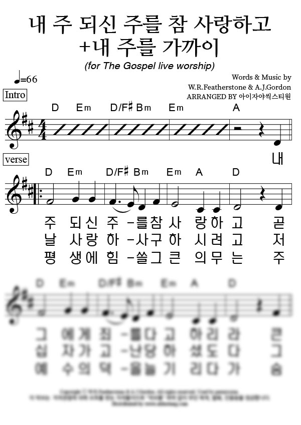 - 내 주 되신 주를 참 사랑하고 & 내 주를 가까이
