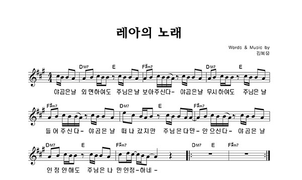[레아의 노래]는 김형준 목사님의 “하나님께 돌아오는 연습”이라는 책에 나오는 레아의 이야기를 보고 감동을 받아쓰게 된 곡이다. 또한 “Bokyou, you are so special” ..”no matter what people say..” 라며 기도해준 Joyce Lee에게 깊은 감사를 표한다. 그녀의 기도 덕분에 하나님의 마음을 알 수 있어 포기하지 않고 많은 곡들이 나올 수 있었다.