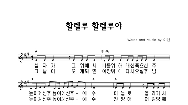 | 할렐루 할렐루야 큰글씨 | 단선 |