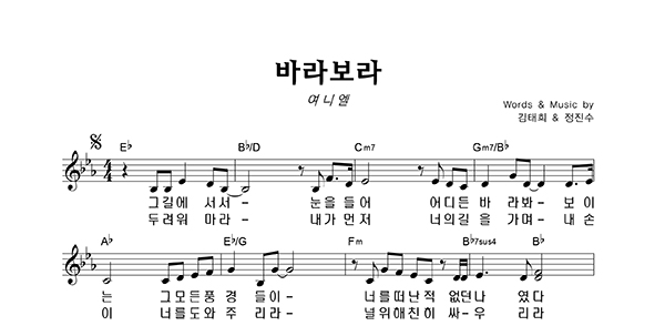 2017년 5월 [주는 나의 길 나의 힘]으로 시작되어 2018년 [양의 문]으로 1집 앨범의 쉼표를 찍었던 여니엘의 찬양의 발걸음은 2019년 1월 [바라보라]로 계속된다.