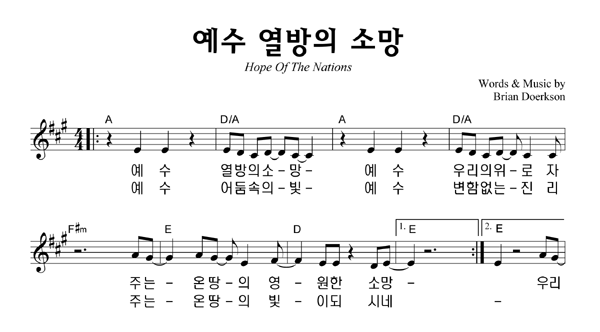 | 예수 열방의 소망 큰글씨 | 단선 |