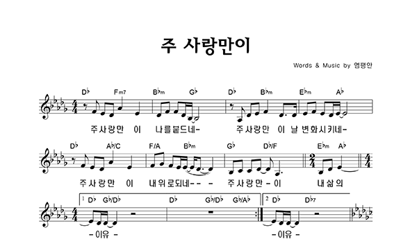 | 제목/가사첫줄 | 악보형식 | 작사/작곡 | 코드 | 캐시 | 보기 | 담기 |