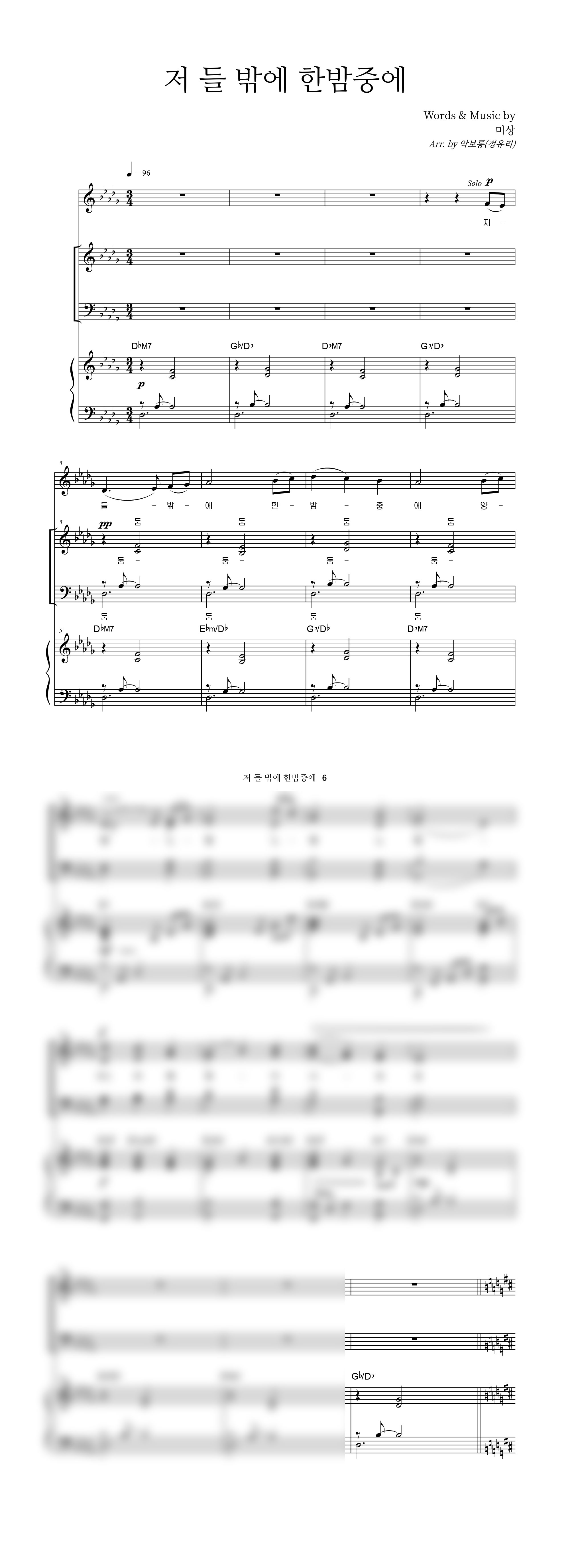 | 저 들 밖에 한밤중에 | 2부 + 피아노 반주 |