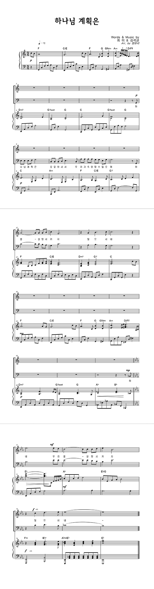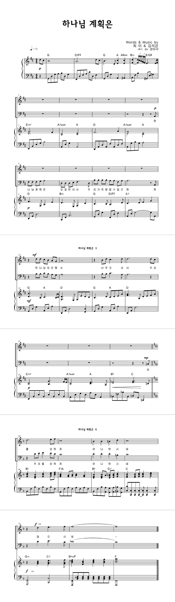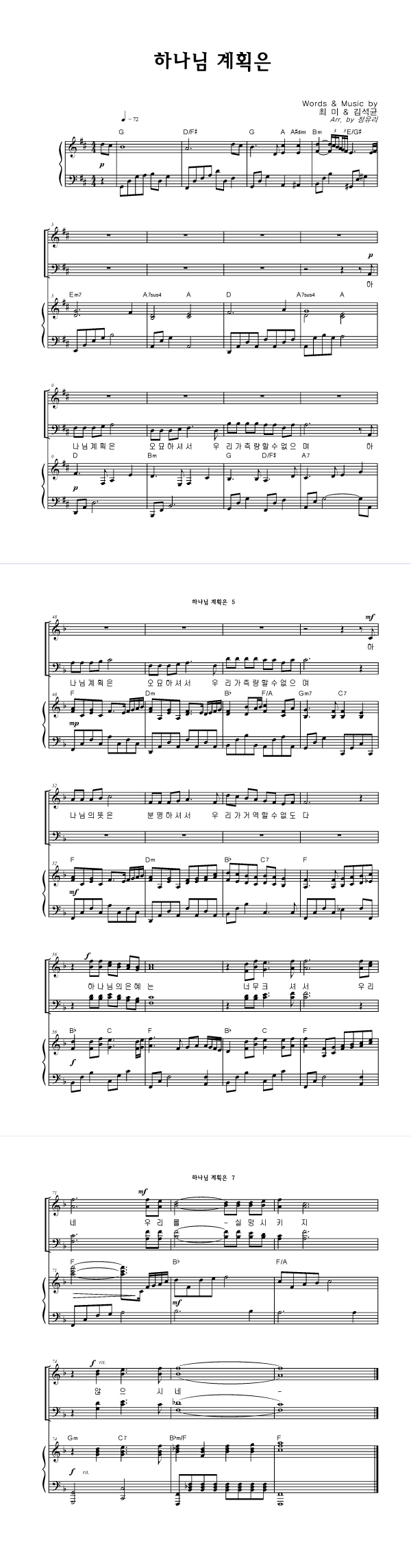 | 하나님 계획은 | 4부 + 피아노 반주 |