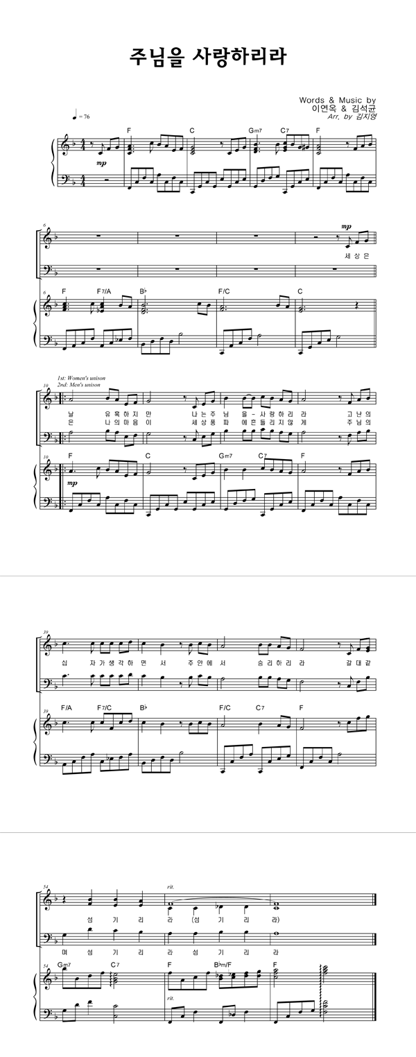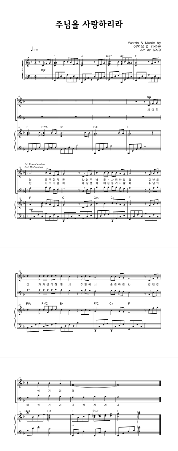 | 주님을 사랑하리라 | 4부 + 피아노 반주 |
