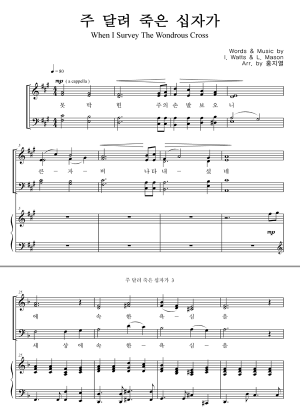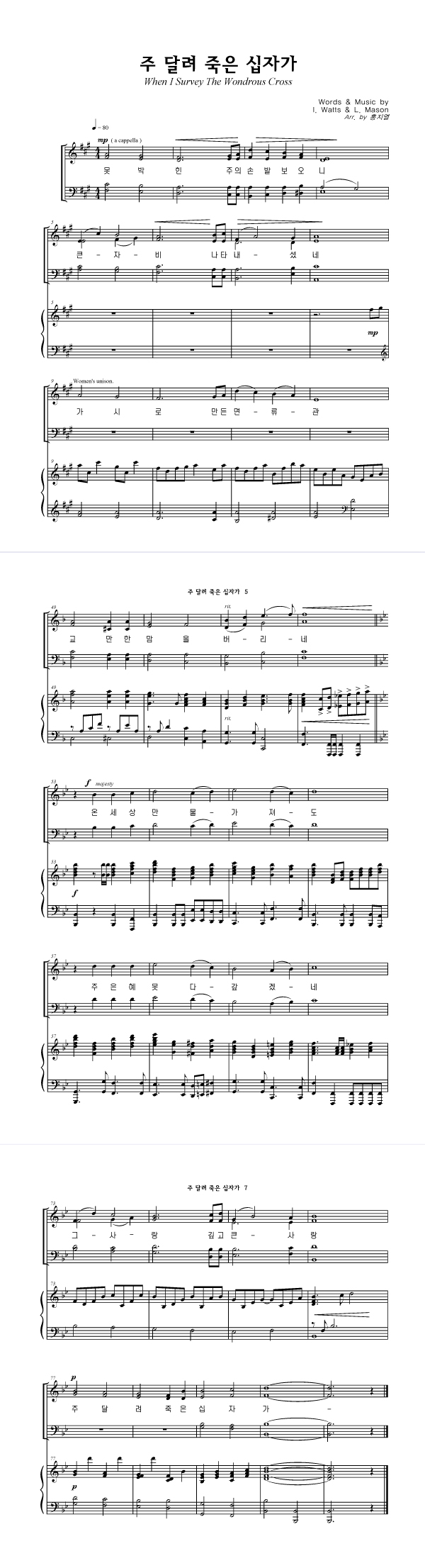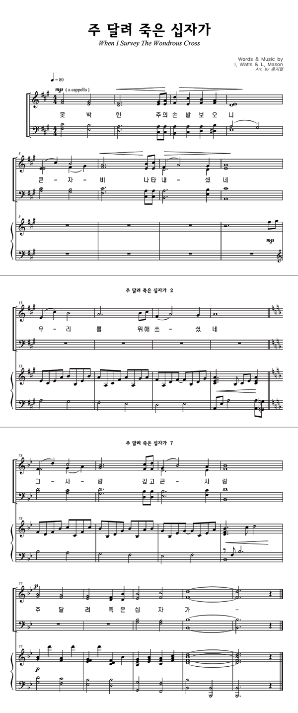 | 주 달려 죽은 십자가 | 4부 + 피아노 반주 |