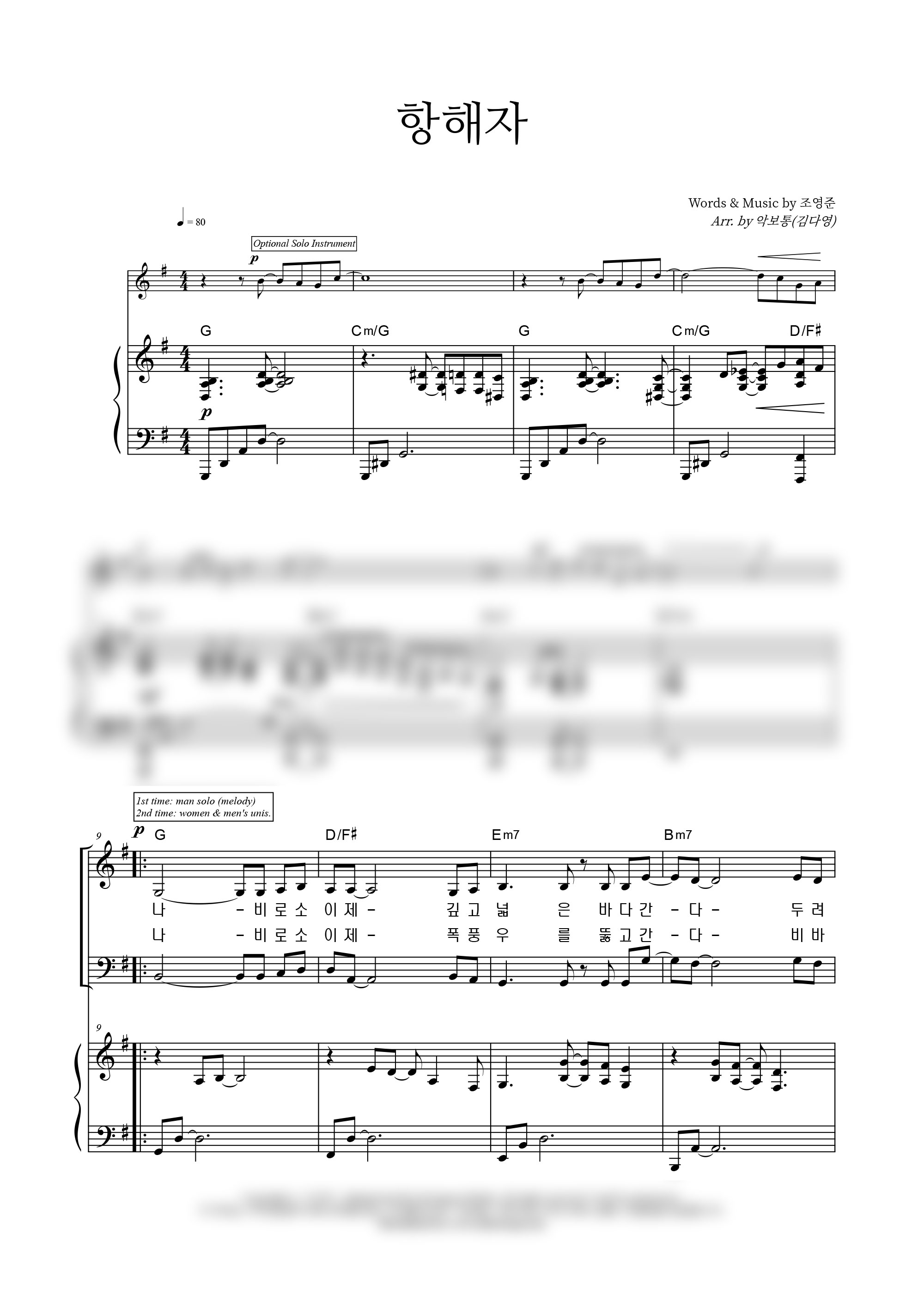 | 항해자 | 4부 + 피아노 반주 |