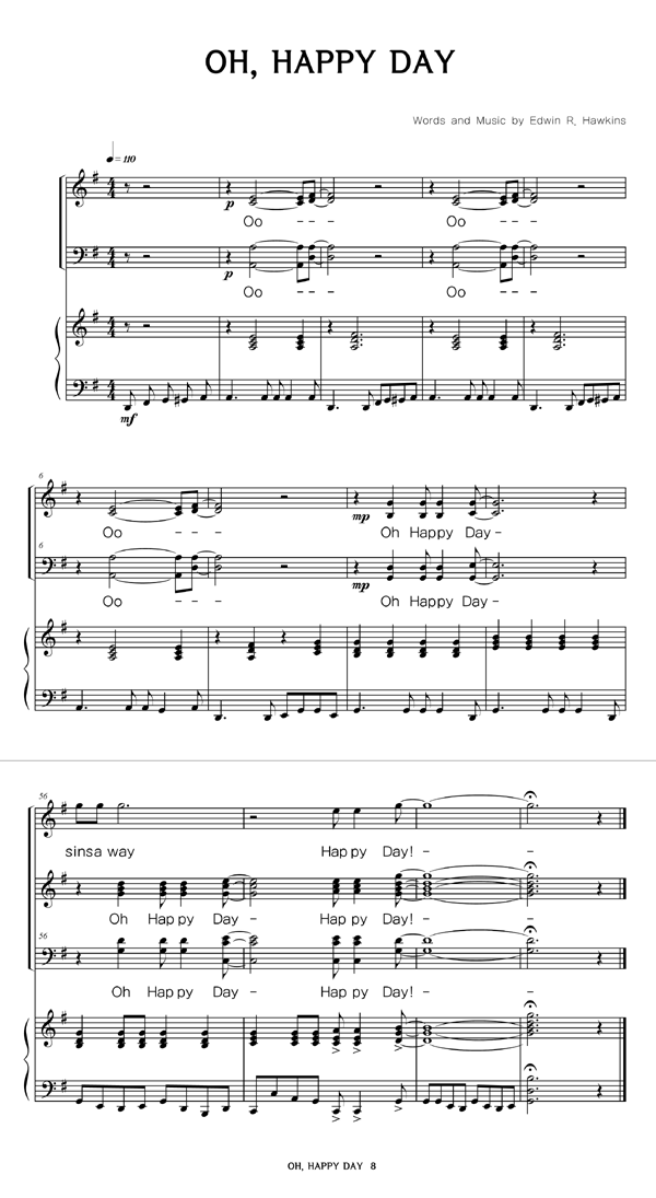 | Oh, Happy Day | 4부 + 피아노 반주 |