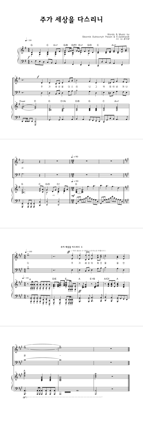 | 주가 세상을 다스리니 | 3부 + 피아노 반주 |
