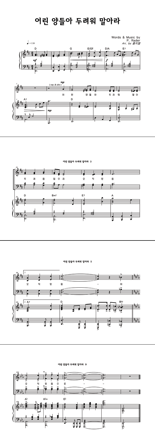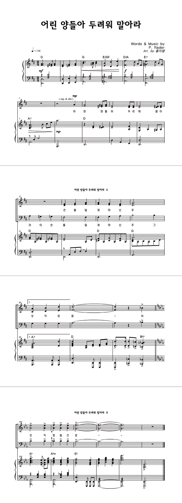| 어린 양들아 두려워 말아라 | 4부 + 피아노 반주 |