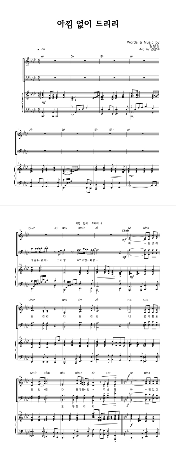 | 아낌 없이 드리리 | 4부 + 피아노 반주 |