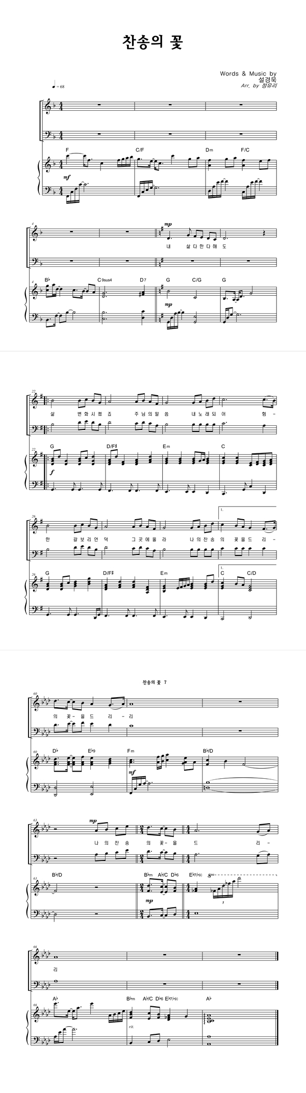 | 찬송의 꽃 | 3부 + 피아노 반주 |
