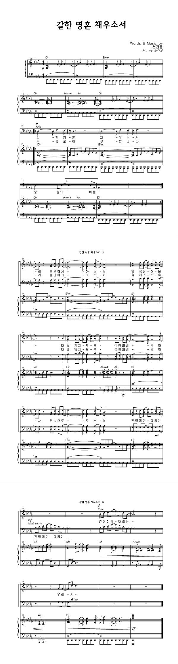 | 갈한 영혼 채우소서 | 3부 + 피아노 반주 |