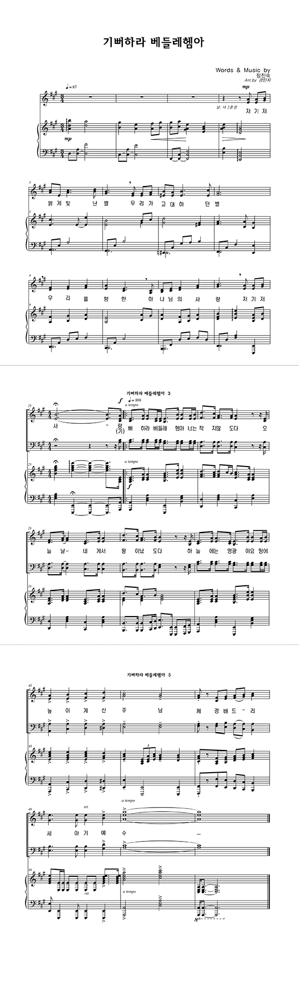 | 기뻐하라 베들레헴아 | 4부 + 피아노 반주 |