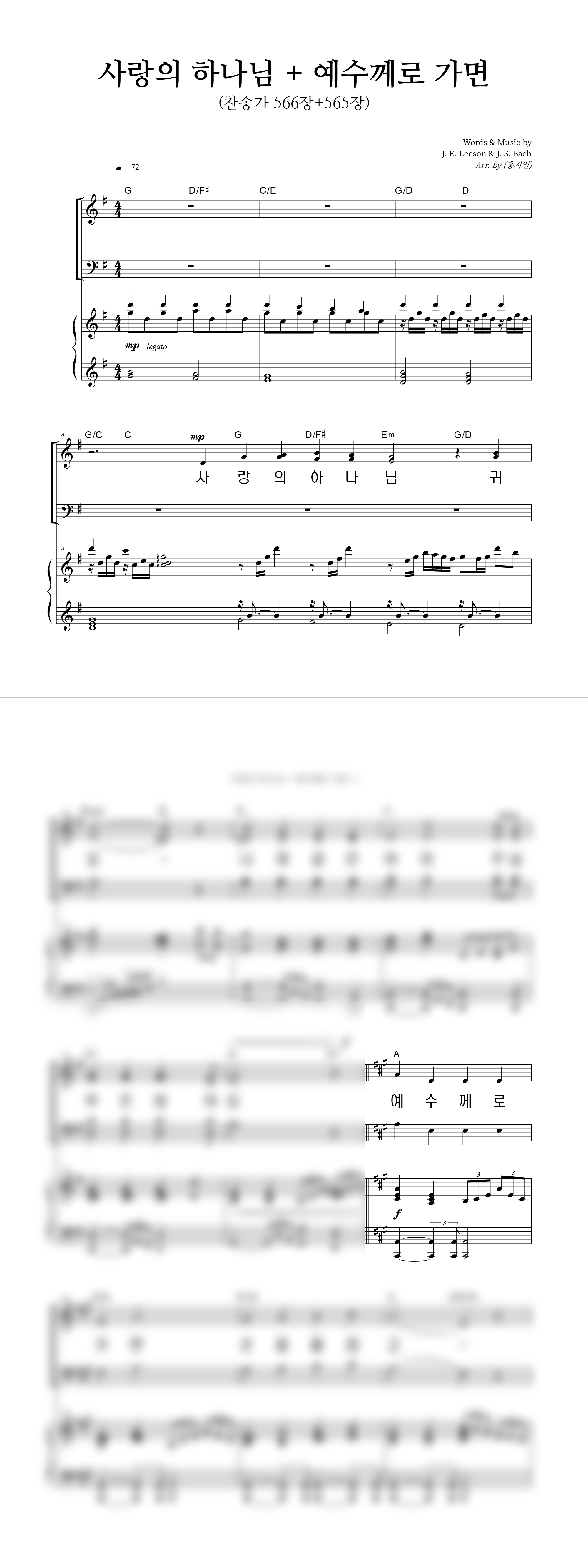 | 사랑의 하나님+예수께로 가면 (찬송가 566장+565장) | 4부 + 피아노 반주 |