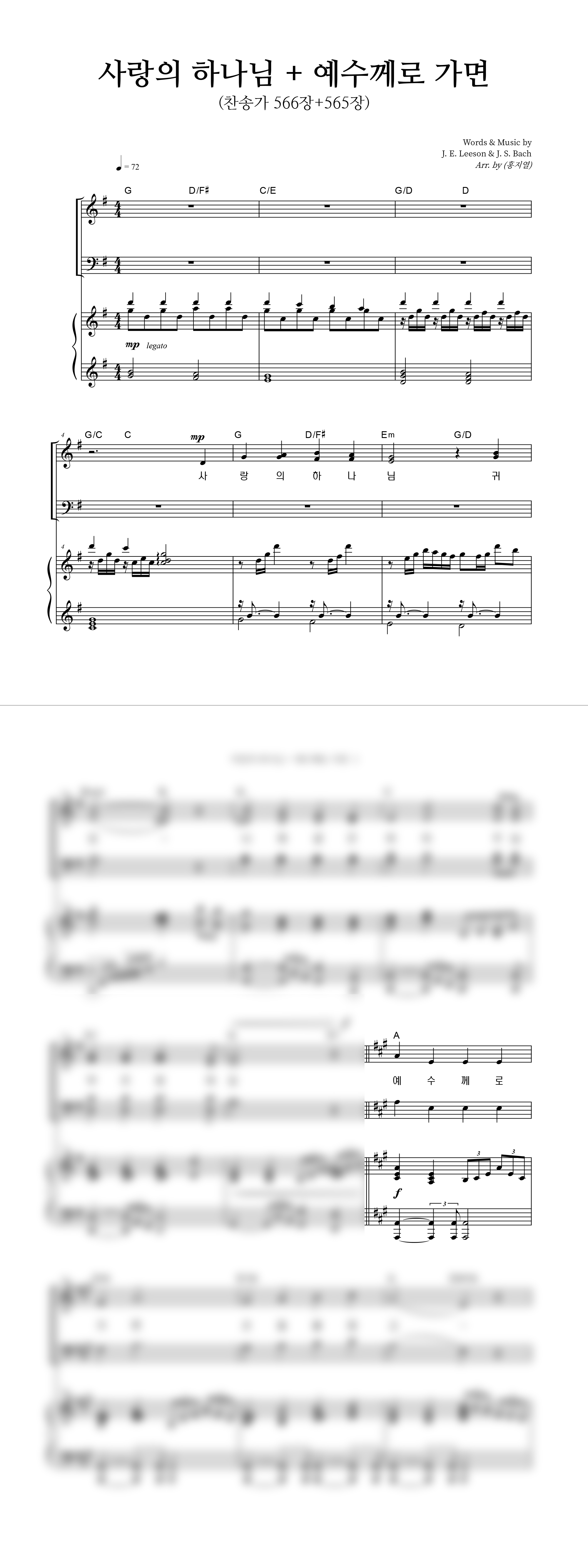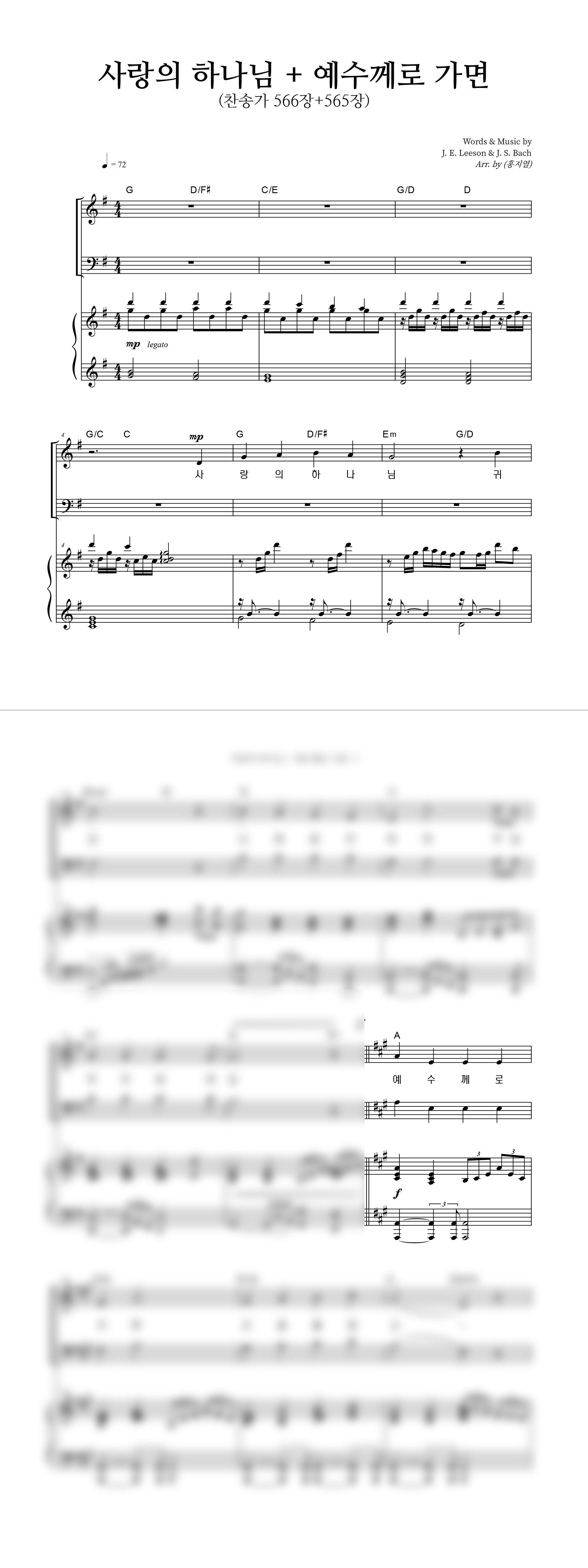 | 사랑의 하나님+예수께로 가면 (찬송가 566장+565장) | 3부 + 피아노 반주 |