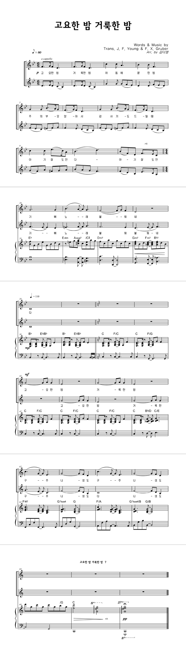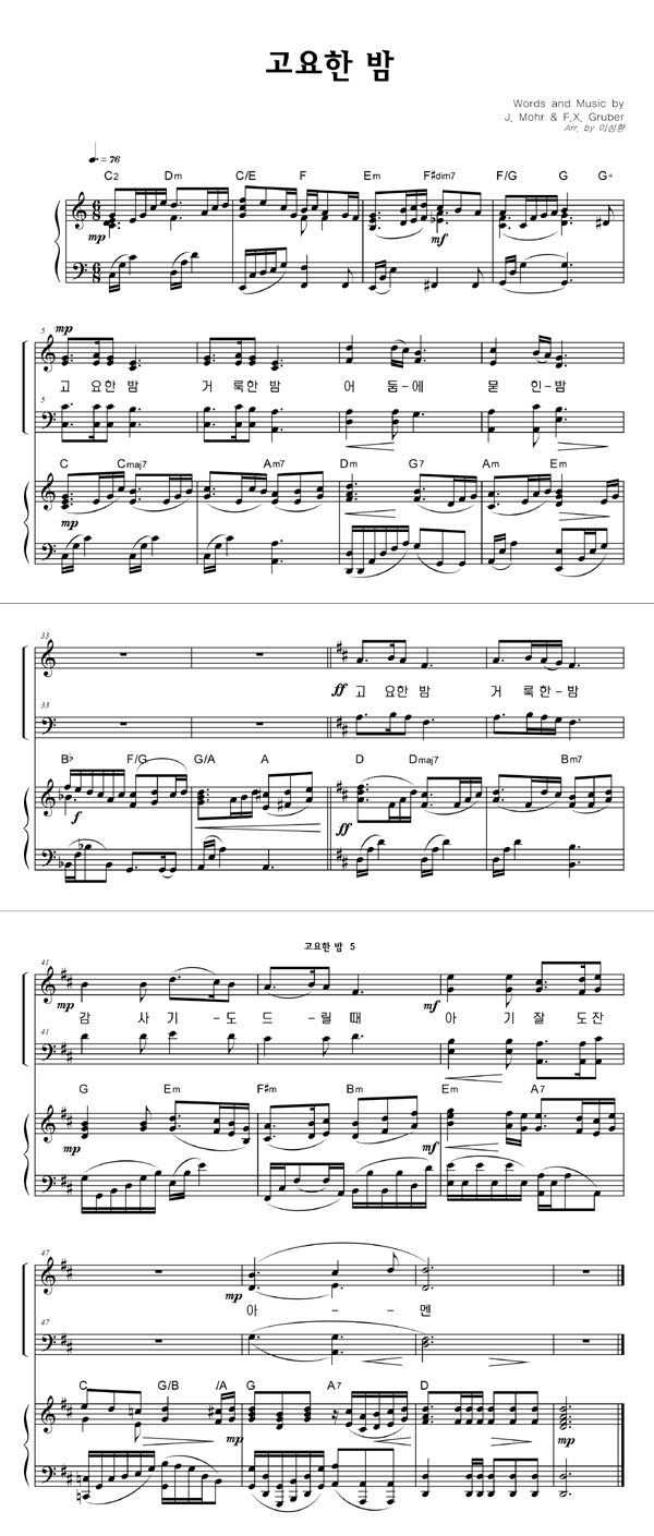 | 고요한 밤 거룩한 밤 (찬송가 109장) | 4부 + 피아노 반주 |