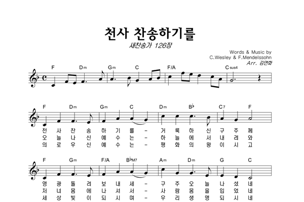 | 천사 찬송하기를 (찬송가 126장) | 2부 + 피아노 반주 |