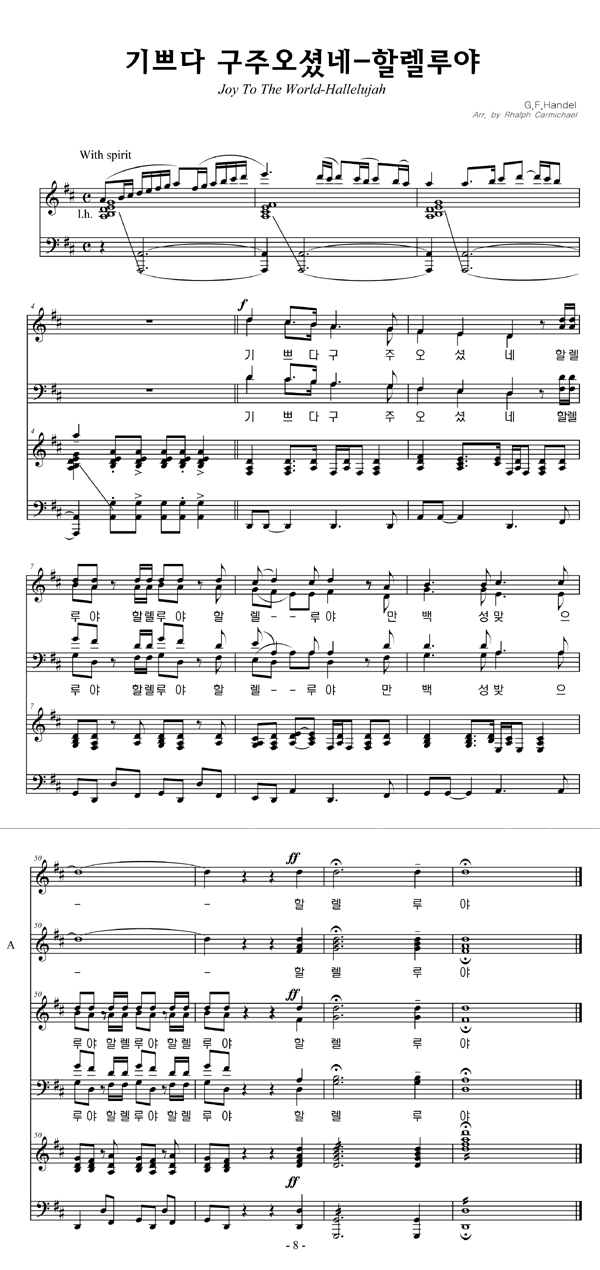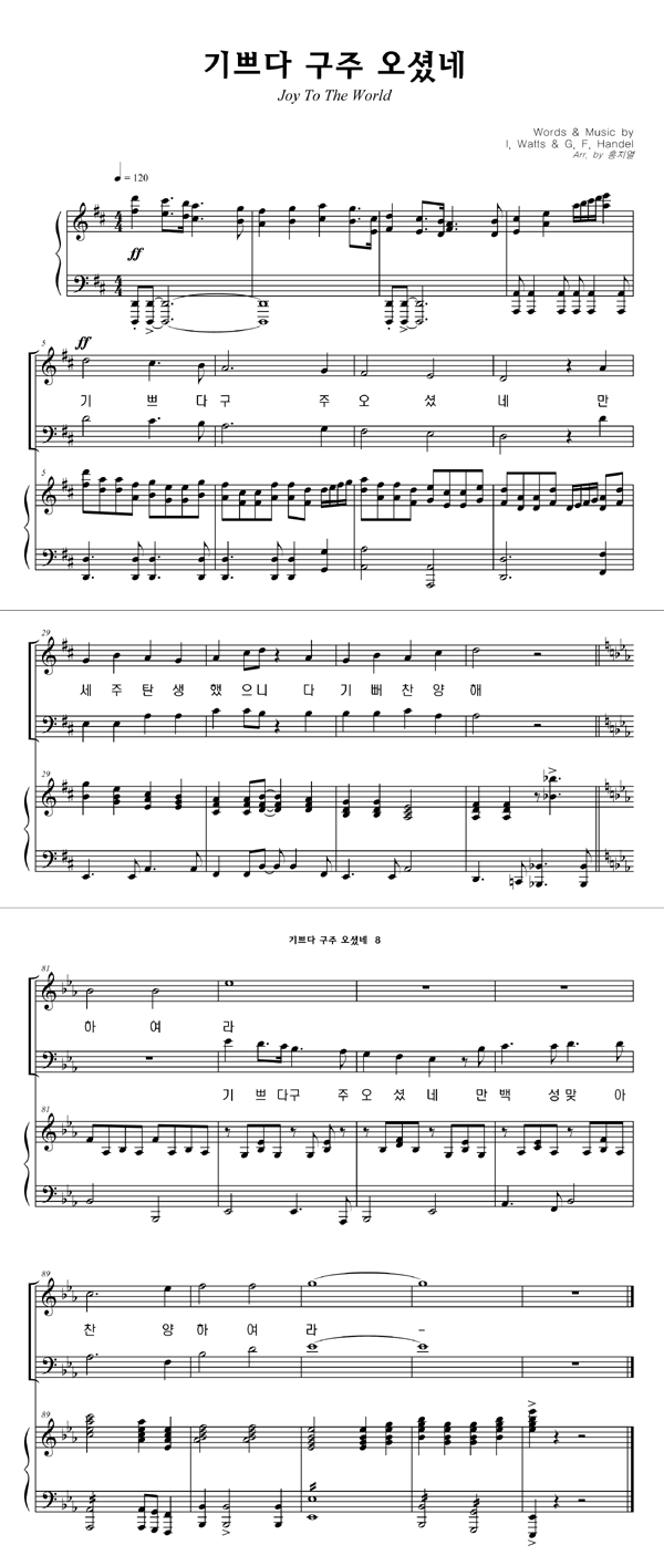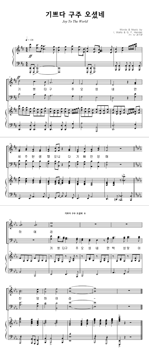 | 기쁘다 구주 오셨네 (찬송가 115장) | 2부 + 피아노 반주 |