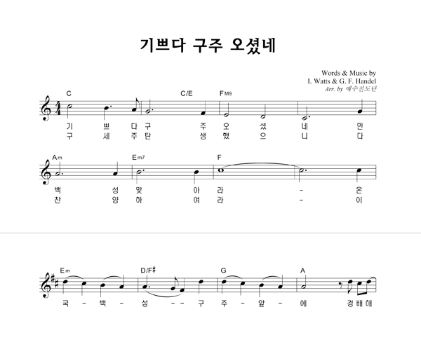 | 기쁘다 구주 오셨네 (찬송가 115장) | 단선 |
