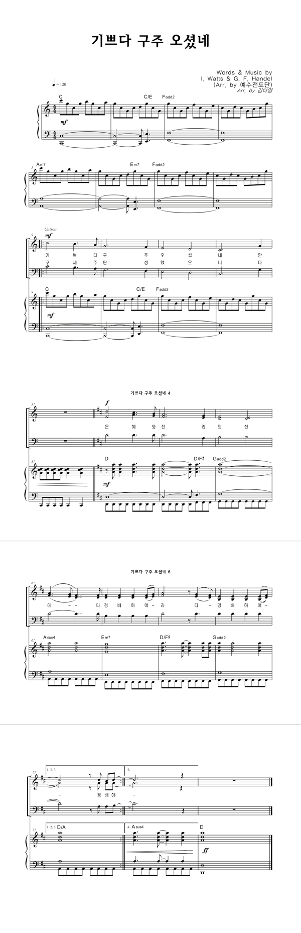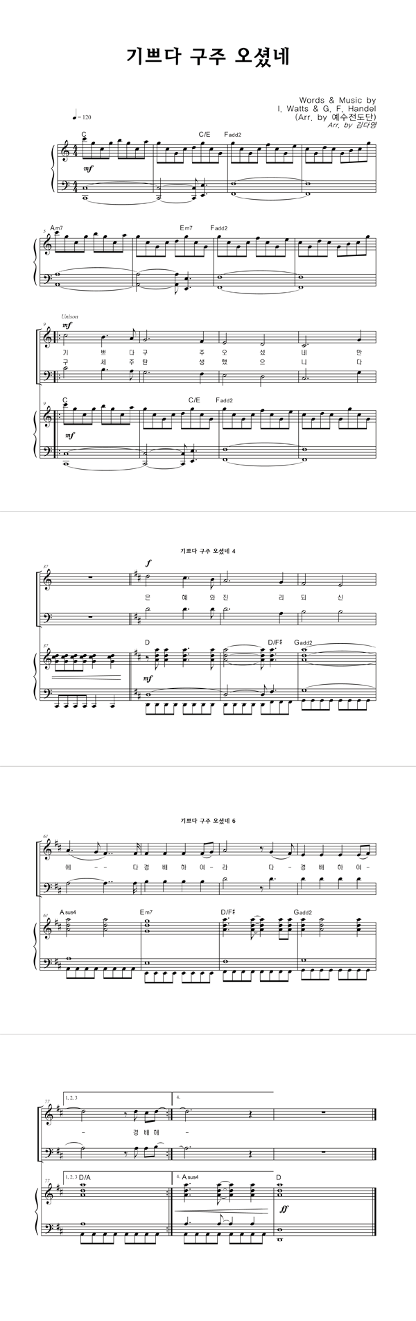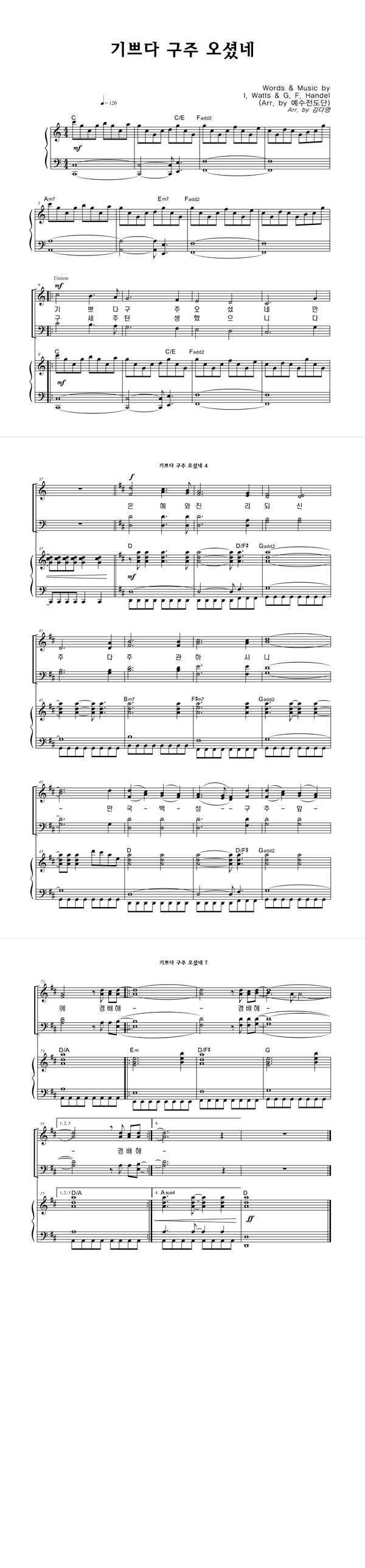| 기쁘다 구주 오셨네 (찬송가 115장) | 4부 + 피아노 반주 |