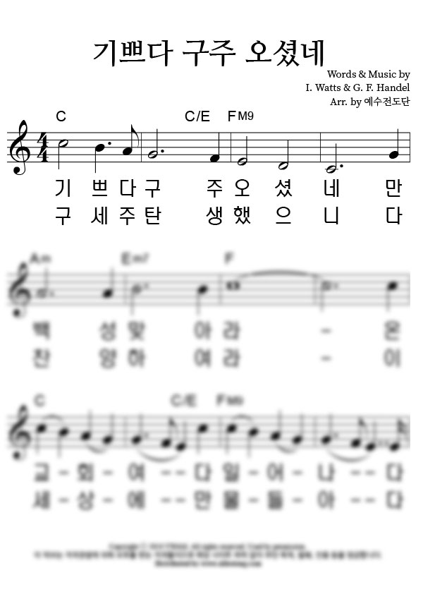 | 기쁘다 구주 오셨네 (찬송가 115장) 큰글씨 | 4부 + 피아노 반주 |