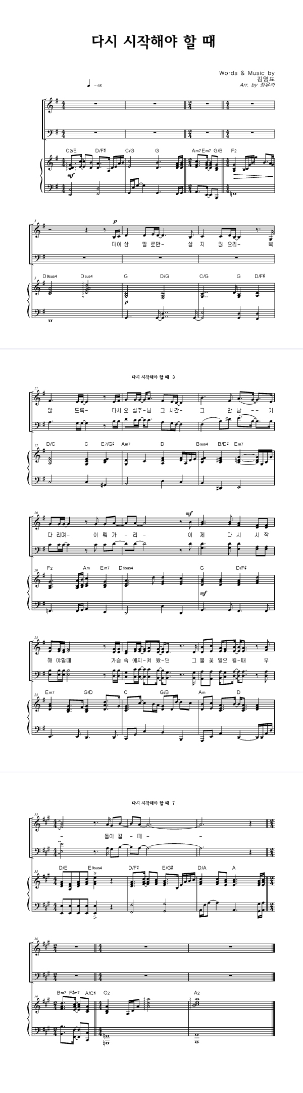 | 다시 시작해야 할 때 | 3부 + 피아노 반주 |