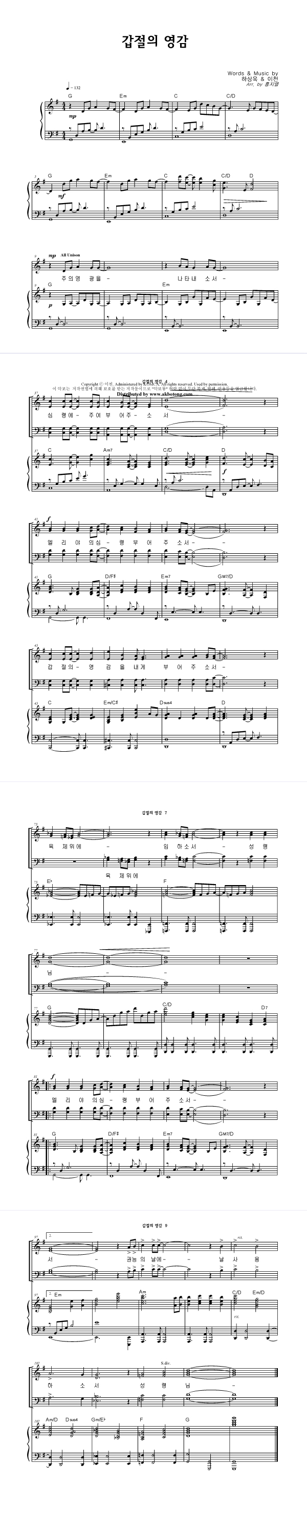 | 오순절 | 4부 + 피아노 반주 |