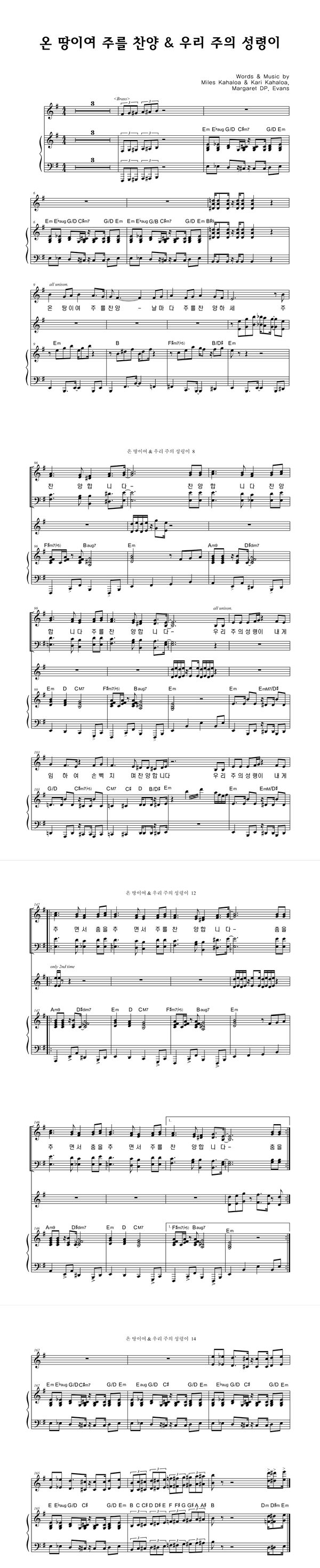 | 온 땅이여 주를 찬양 우리 주의 성령이 | 4부 + 피아노 반주 |