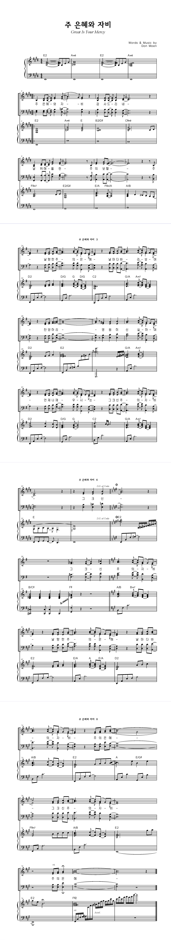 | 주 은혜와 자비 큰글씨 | 4부 + 피아노 반주 |