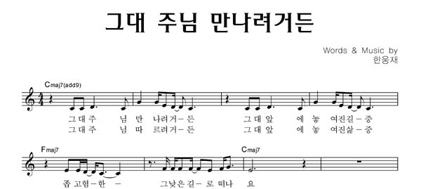 | 제목/가사첫줄 | 악보형식 | 작사/작곡 | 코드 | 캐시 | 보기 | 담기 |