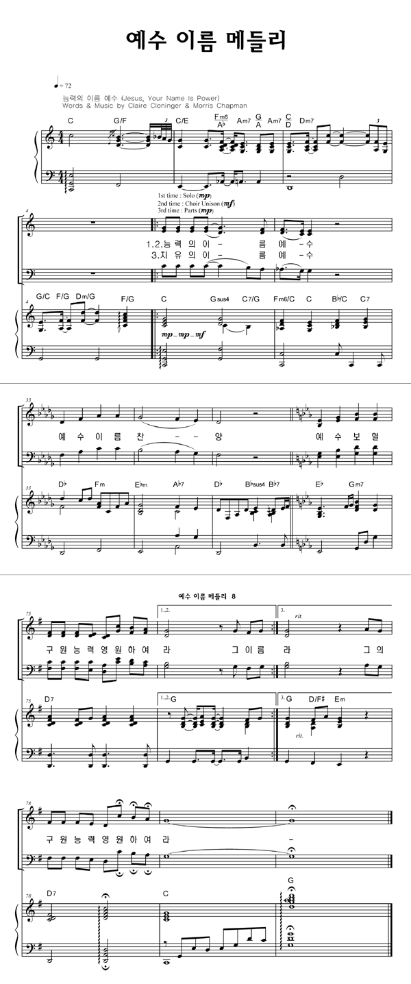 | 예수 이름 메들리 | 4부 + 피아노 반주 |