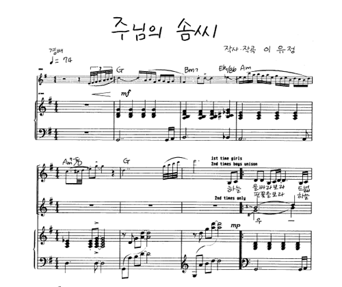 | 주님의 솜씨 | 4부 + 피아노 반주 |