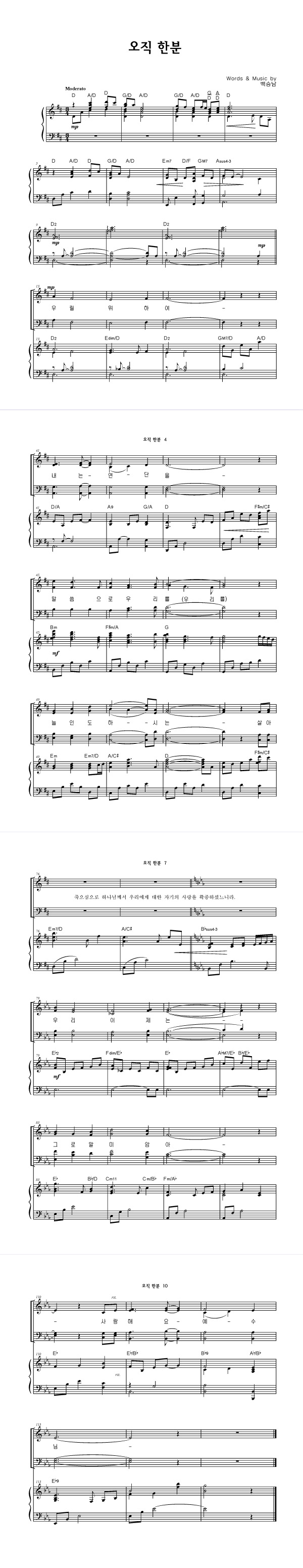 | 오직 한분 | 4부 + 피아노 반주 |