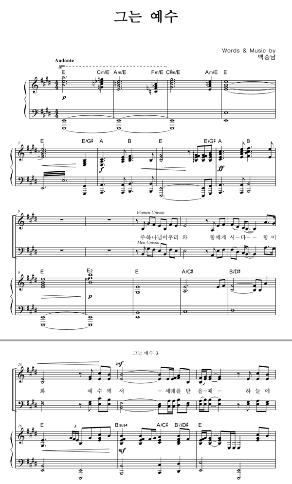 | 그는 예수 | 4부 + 피아노 반주 |
